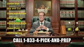 On TV, a lawyer-like spokesperson encouraged people to avoid the dangers of the kitchen and use Pick & Prep instead.